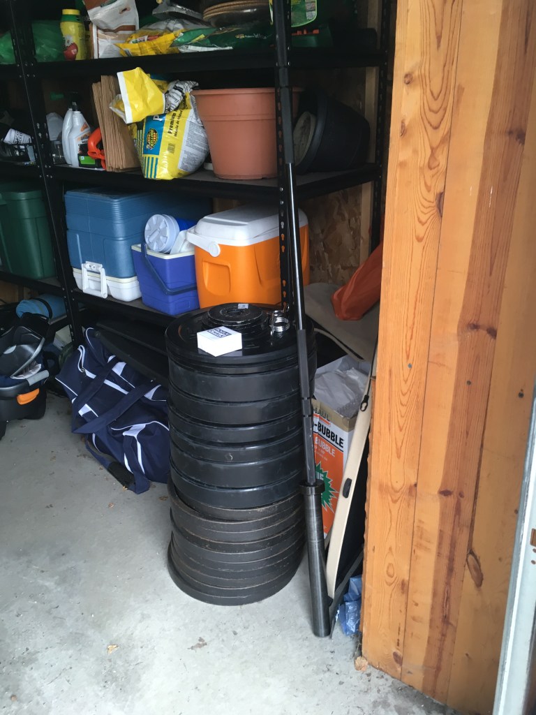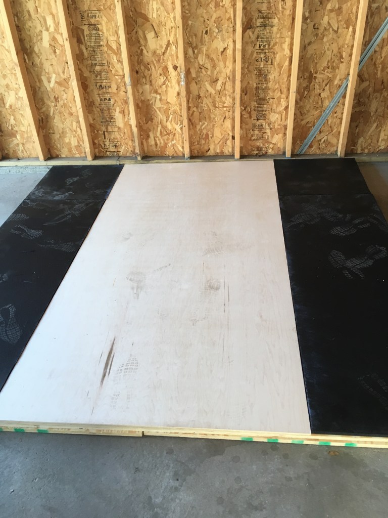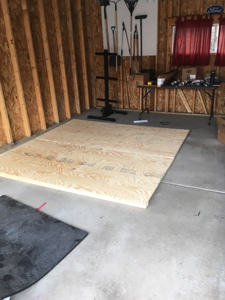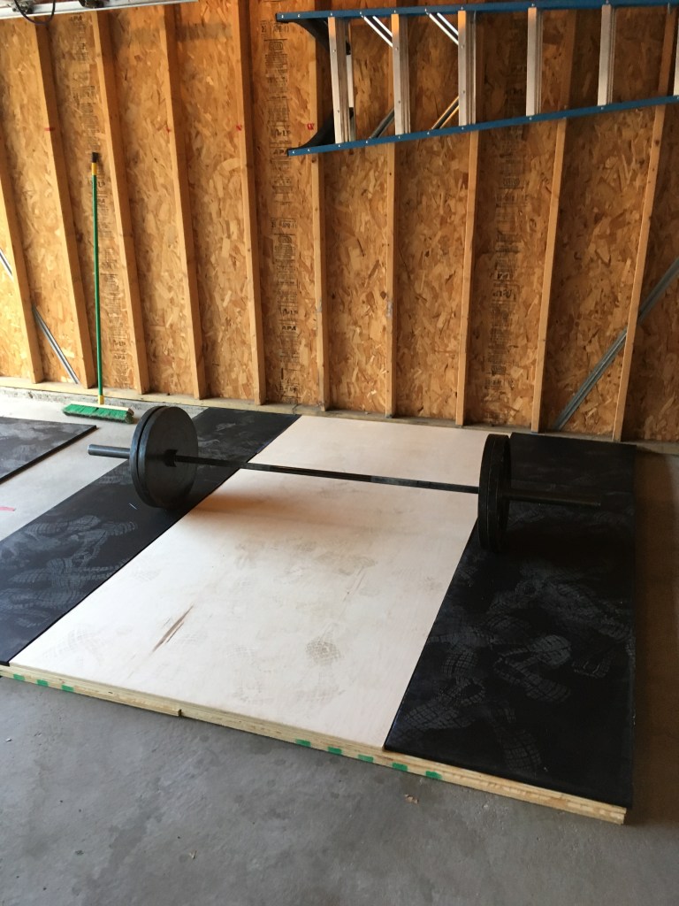 So I now had my barbell and around 680 pounds of plates. Now all I needed was something to make sure I didn’t destroy the foundation of my garage.